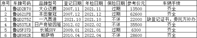 1月13日臨沂邁騰、豐田、奧迪等汽車拍賣公告