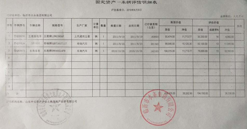 臨沂市水務(wù)集團有限公司所屬3輛機動車資產(chǎn)包(項目編號LYZC2020001)。不含車牌,單輛拍賣