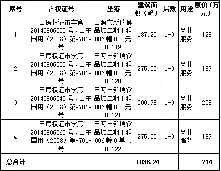 4、位于日照市東港區(qū)望海路與日照路交匯處西100米,日照市新瑞食品城二期工程006幢4套房產(chǎn),可單獨(dú)出售,分別為0單元0-119,0-120,0-121,0-122,有租賃。