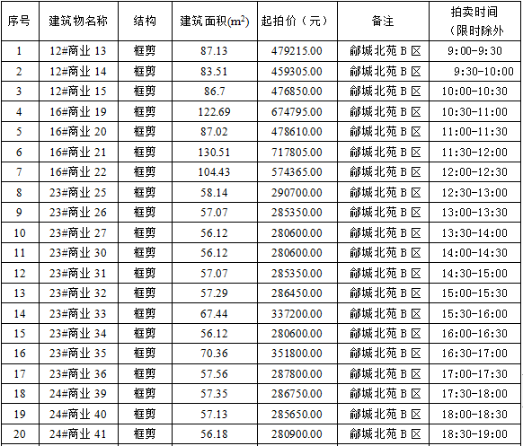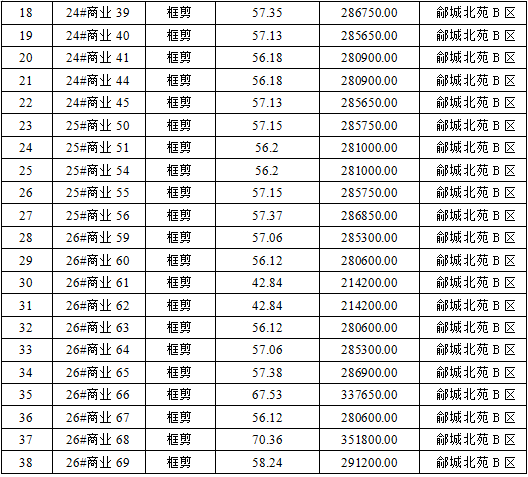 夏津縣鄃城北苑商業(yè)房38間,結(jié)構(gòu)為;框剪結(jié)構(gòu)。 (詳見本公告第一條)