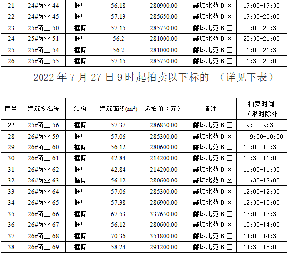 網(wǎng)上報(bào)價(jià)時(shí)間為2022年7月26日9時(shí)起拍賣以下標(biāo)的 (詳見下表):