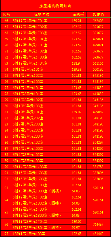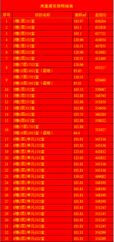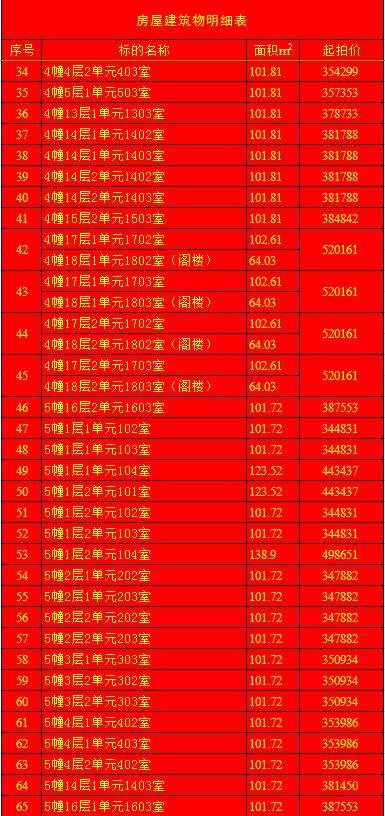 受蘭陵縣建安房地產(chǎn)開發(fā)有限公司委托,我公司定于2020年1月11日上午9時(shí),在蘭陵縣黨校二樓會(huì)議室(順和路西段路北)公開拍賣:蘭陵縣明珠新城房產(chǎn)112套及部分儲(chǔ)藏室。房產(chǎn)面積64.03-163.69㎡不等(其中18套房產(chǎn)與上層閣樓整體拍賣);儲(chǔ)藏室面積6.28-13.02㎡不等;單套拍賣。競買保證金:房產(chǎn)5萬元/套,儲(chǔ)藏室1萬元/套。請(qǐng)微信掃描本公告下方二維碼,關(guān)注“光彩銀星拍賣”公眾號(hào),查看拍賣標(biāo)的詳細(xì)清單。